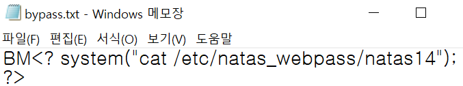 앞에 두 BM은 BMP 이미지 파일의 Header이기 때문에 제외하고 뒤의 문자열이 바로 우리가 원하는 패스워드입니다.