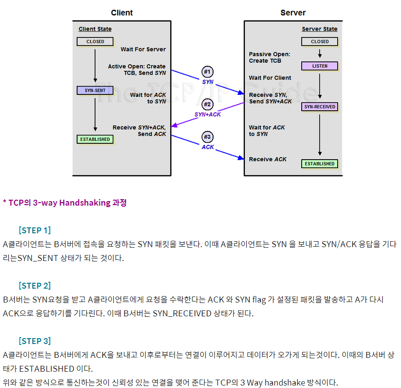 TCP를 통해 데이터를 교환하기 전에 두 hosts는 반드시 3-way handshake를 통해 연결돼야 한다.
