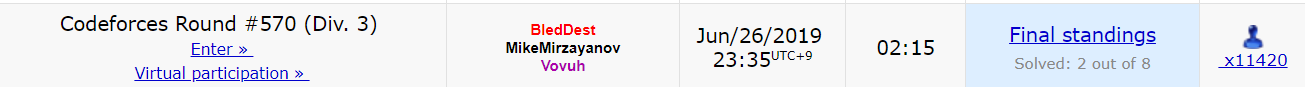 Codeforces Div.3을 우리나라 시간으로 오후 11:35에 시작해서 2시간 동안 진행했습니다.