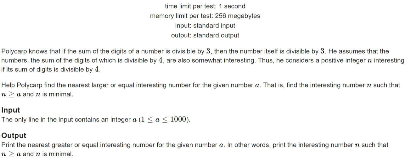 Input으로 주어진 수가 흥미로운 수인지를 밝히고, 그렇지 않다면 주어진 값과 가장 가까운 크거나 같은 수를 찾아 그 수를 출력하라는 뜻입니다.