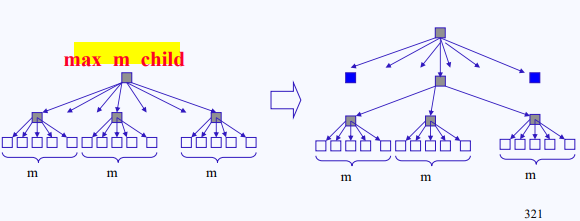 그럼 그것들을 이을 또 다른 섹터가 필요하니 그 위에 계속 쌓다 보면 루트 노드가 하나 생길 때까지 이어질 것이다. 이렇게 여러 갈래로 뻗은 tree를 m-way tree라고 한다. 그런데 균형이 안 맞는 형태로 존재할 수도 있다. 하지만 여기서는 균형이 맞도록 만든 상태다. 이걸 Balanced tree(B-tree of order m)라고 한다.