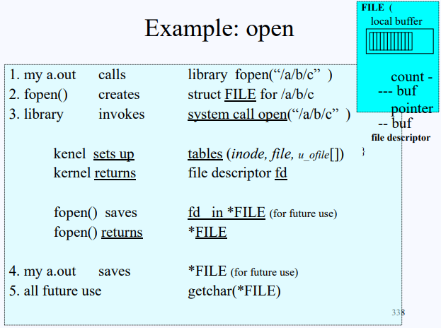 - fopen() 함수 안에서는 /a/b/c를 위한 FILE struct를 만든다.