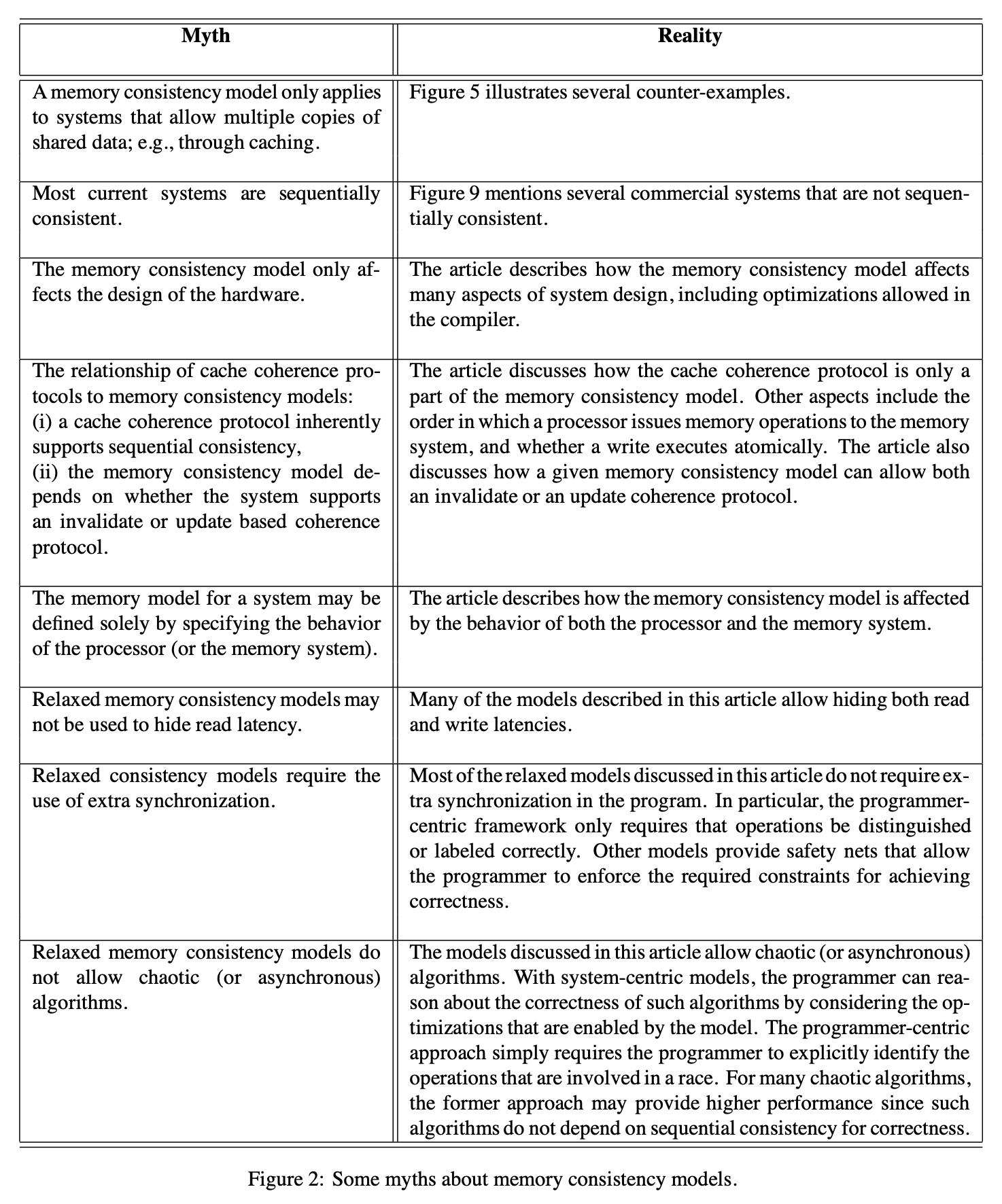 요약하자면, memory model은 프로그래머의 관점에서 본 병렬 프로그램 작성과 시스템 디자이너 관점에서 본 병렬 시스템(프로세서, 메모리 시스템, 상호 연결된 네트워크, 컴파일러, 프로그래밍 언어들을 포함) 디자인에서의 사실상 거의 모든 측면에 영향을 미친다.